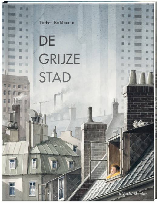 De prachtige tekeningen doen dit boek opvallen. De grijze stad is realistisch en gedetailleerd uitgebeeld met pagina vullende aquareltekeningen in de meest uiteenlopende tinten grijs. Ik wist niet dat er zoveel verschillende tinten grijs bestonden. (leigrijs, duifgrijs, zandgrijs, maangrijs, nevelgrijs, …) De illustraties zijn duidelijk de sterkte van deze auteur / illustrator. Hier en daar zie je doorheen het boek wat meer kleur verschijnen, maar een waterval van sprankelende kleuren wordt het nooit. En toch zijn de prenten geenszins saai. Je kan er blijven naar kijken.